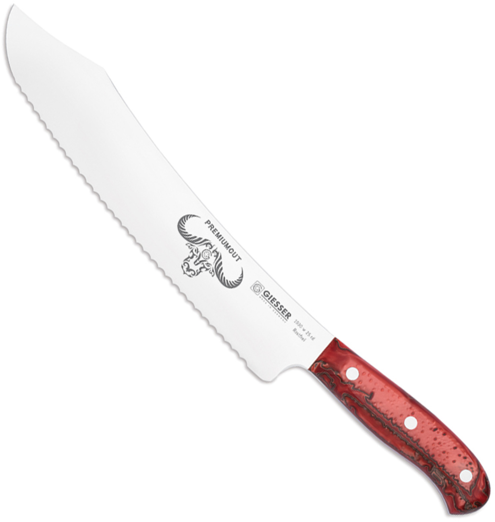 Нож для хлеба Wave No 1 от Giesser относится к серии PremiumCut и отличается крепким и мощным лезвием. Специальный зазубренный край длинного лезвия легко скользит через твердые корочки хлеба и без труда разрезает на ломтики. |